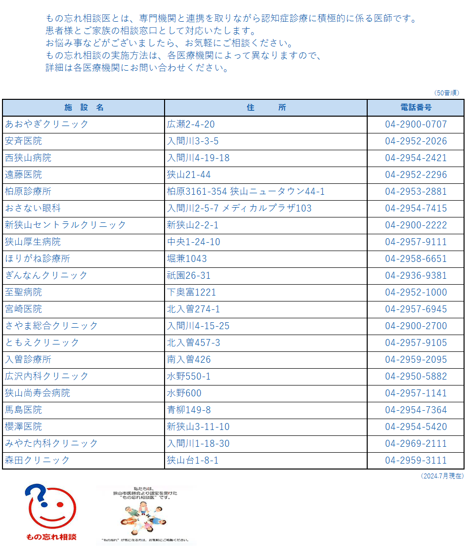 もの忘れ相談医のご案内